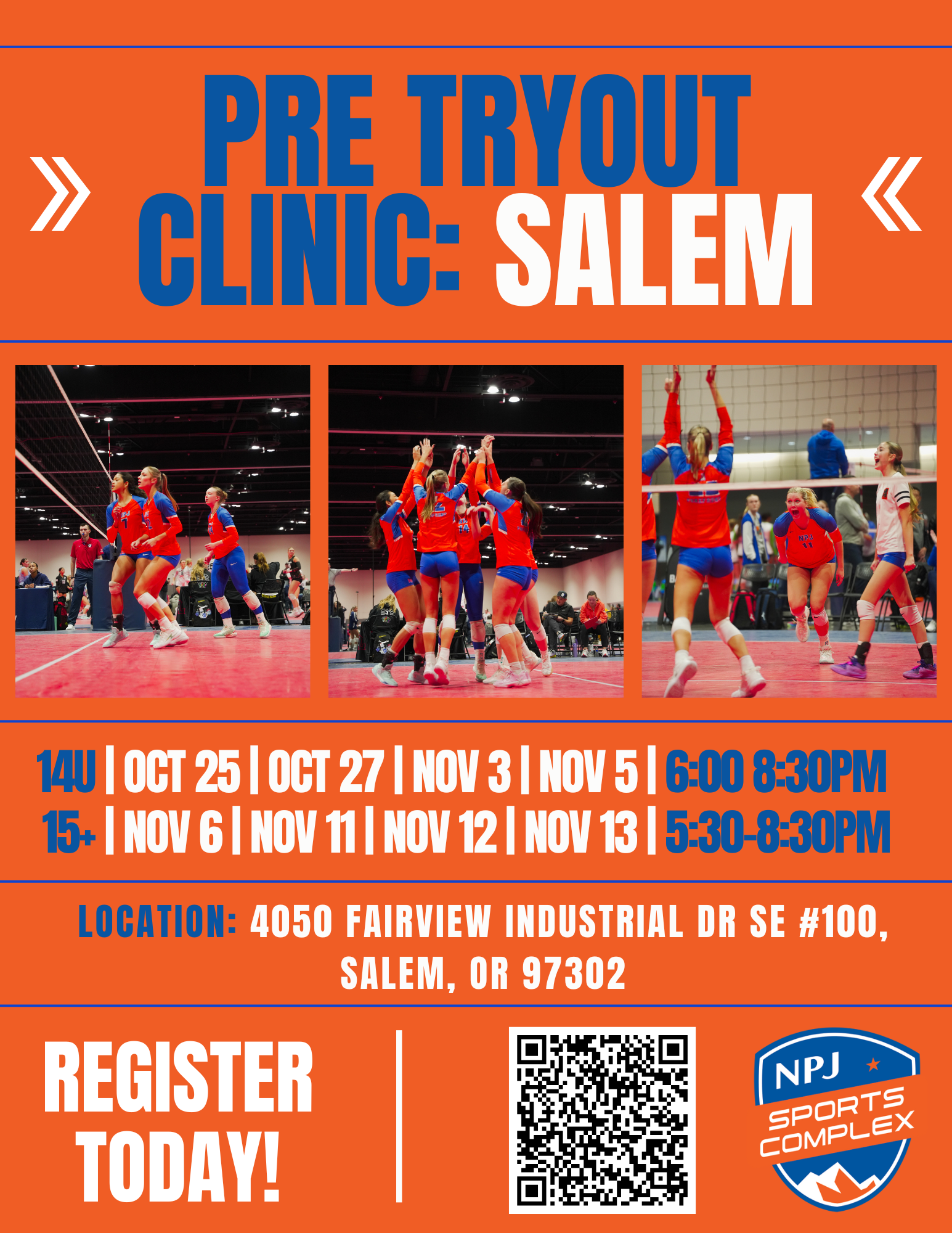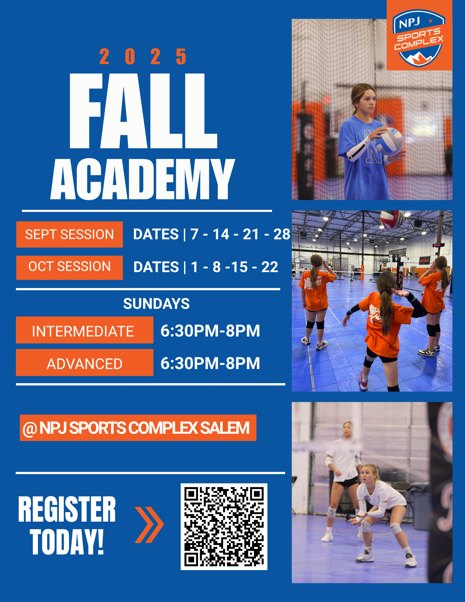 Athletes are also able to earn credit which can be used towards any NPJ Volleyball programs. To learn more about the NPJ Salem Complex Credit Opportunity click here.